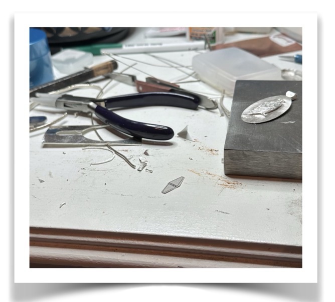 The third week of December turned out to be a busy time: We had the first “big” snow of the year; One of the projects I had started working on in November, was almost finished: a hawk pendant; Another piece, also started in the 11th month, was ruined: a bezel set stone; Lastly, my youngest daughter and I took an enameling workshop.