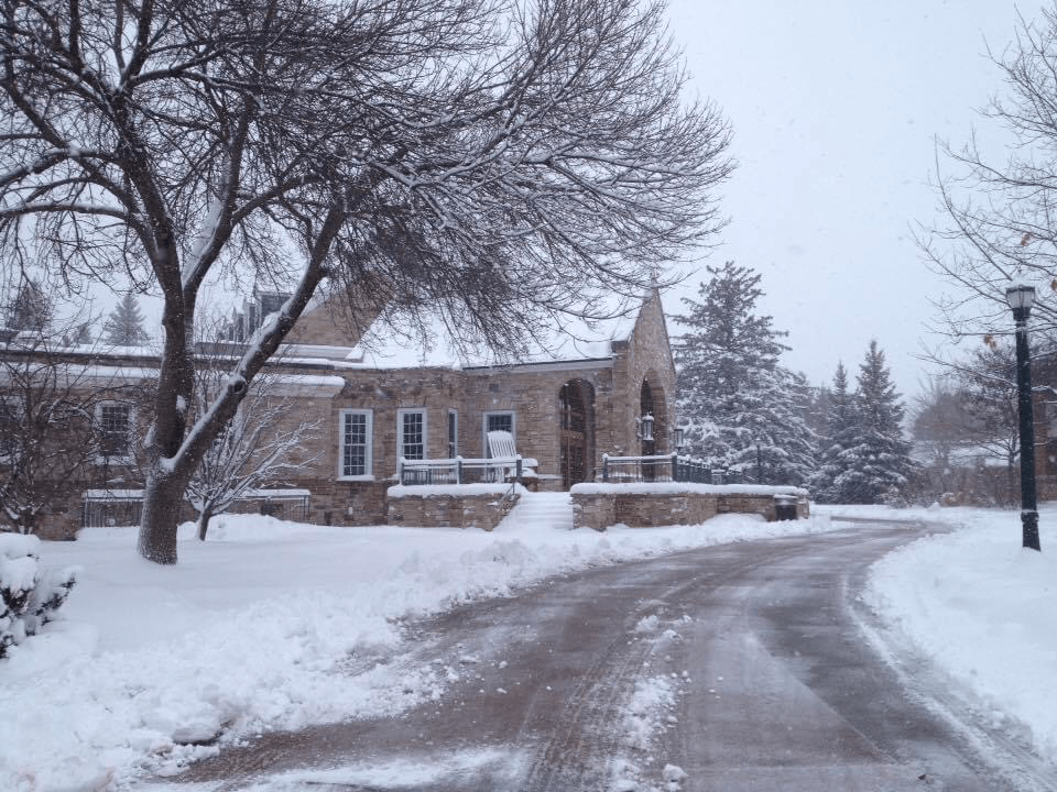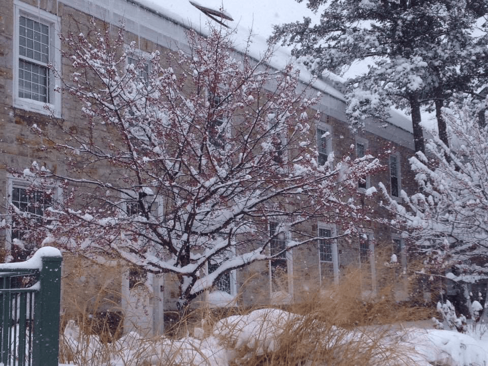 My daughter and I went on the next college tour in November of her junior year. The week before Thanksgiving, we headed to New York: first to Ithaca, then to a small town called Canton. Our last stop was to be Syracuse. Although lake effect snow was called for, we set out under a clear blue sky. Arriving at dusk there was no snow in sight. The next morning, the two of us went running: my daughter was in front and I trailed behind. Wet snow began to fall. That morning, through our tour of Cornell, the snow increased. After lunch, my minivan (with no 4 wheel drive or snow tires) headed to Canton. The snow became heavy and I drove at a snails pace. Finally, after an anxious drive, our hotel was in sight. After a good dinner, it felt nice to lay my head down and go to sleep. When we awoke, the ground was blanketed with about 7-10 inches of snow. While the snow fell, a private tour was taken at St. Lawerence University, my eldest child in her fashion boots, and I wearing my snow boots. Upon returning to our hotel, I lamented to the courtesy workers that we were supposed to leave the next morning to go to Syracuse. Our destination didn’t
